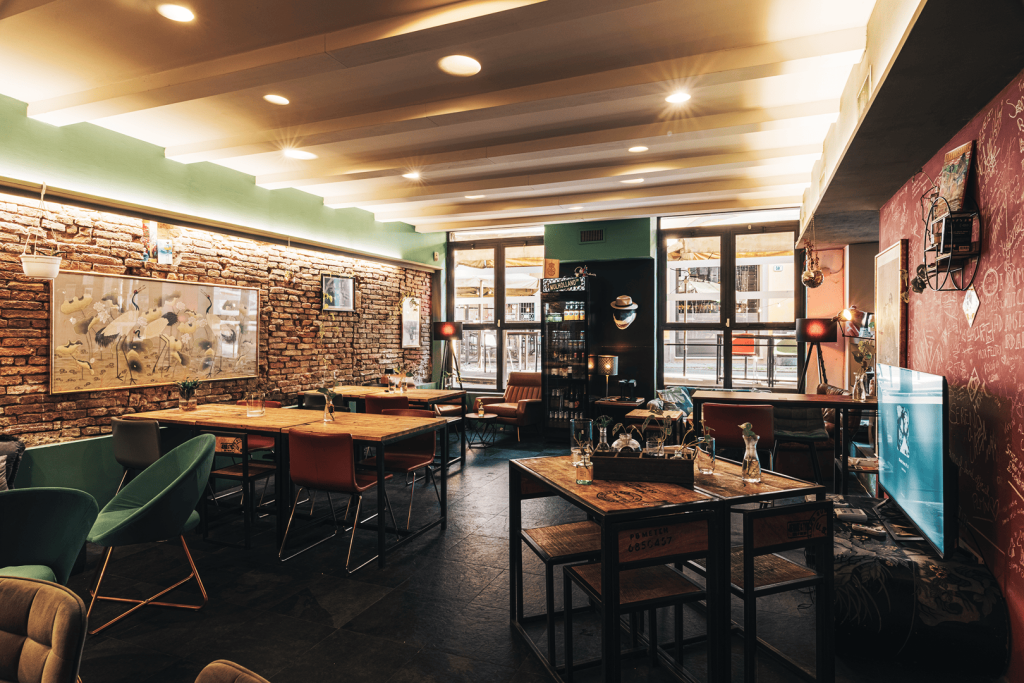 Quello che puoi mangiare nel locale è definita a supporto della mixology e prevede appetizer disponibili fino a tarda notte: patatine fritte, nuggets, jalapeño con cream cheese, falafel, tortellini fritti, polenta fritta; piccoli piatti caldi disponibili fino alle 22:30, che comprendono tacos vegetariani e di carne, tartarre, zuppa di cipolle e altre sfizioserie. Ogni prelibatezza è protagonista di occasionali degustazioni e pairing guidati. Prenota la tua serata, comodamente seduto a uno dei nostri tavoli.